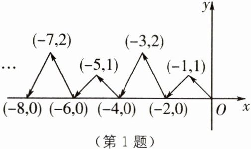1. 如图,动点P在平面直角坐标系中按图中箭头所示方向运动,第1次从原点运动到点(-1,1),第2次接着运动到点(-2,0),第3次接着运动到点(-3,2),…,按这样的运动规律,经过第2025次运动后,动点P的坐标是(