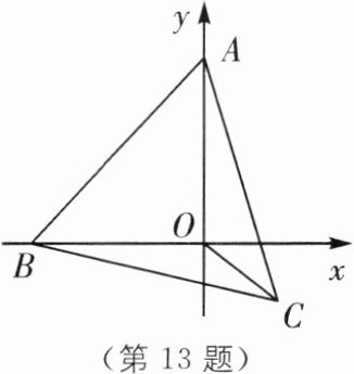 13 (2024·北京海淀区期中)如图,在平面直角坐标系中,点A的坐标是(0,6),点B是x轴上的一个动点.以AB为边向右侧作等边三角形ABC,连接OC,在运动过程中,OC的最小值为