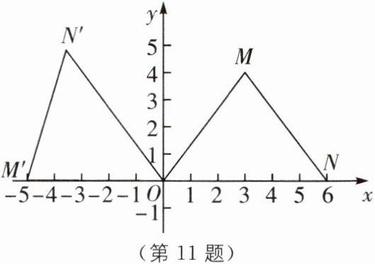 11 (2024·南京玄武区期末)如图,在平面直角坐标系中,点M的坐标为(3,4),点N的坐标为(6,0),将△OMN绕点O按逆时针方向旋转得到△OM'N'.若点M'恰好落在x轴上,则点N'的坐标为(