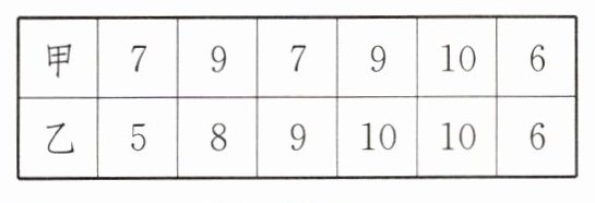 (2)$s^{2}_{甲}=\frac{1}{6}×[(7 - 8)^{2}×2+(9 - 8)^{2}×2+(10 - 8)^{2}+(6 - 8)^{2}]=2$;$s^{2}_{乙}=\frac{1}{6}×[(5 - 8)^{2}+(8 - 8)^{2}+(9 - 8)^{2}+2×(10 - 8)^{2}+(6 - 8)^{2}]=\frac{11}{3}$。