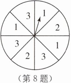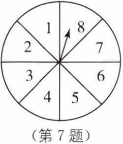 8 转动如图所示的转盘(转盘中各个扇形的面积都相等),当它停止转动时,指针指向标有数字