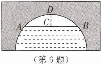 6. 提分优练 如图,一座石桥的主桥拱是圆弧形,某时刻测得水面$AB$宽度为6米,拱高$CD$(弧的中点到水面的距离)为1米.