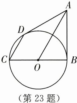 23. (8分)如图,在$Rt△AOB$中,$∠ABO= 90^{\circ },∠OAB= 30^{\circ }$,以点O为圆心、OB的长为半径的圆交BO的延长线于点C,过点C作OA的平行线交$\odot O$于点D,连接AD.