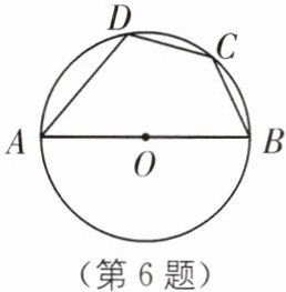6. 如图,四边形ABCD内接于$\odot O$,AB为直径,$\overset{\frown }{BC}= \overset{\frown }{CD}$.若$∠A= 50^{\circ }$,求$∠B$的度数.