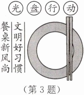 3. 新情境 数学与生活融合 如图是“光盘行动”的宣传海报,图中餐盘与筷子可看成直线和圆的位置关系是( ).