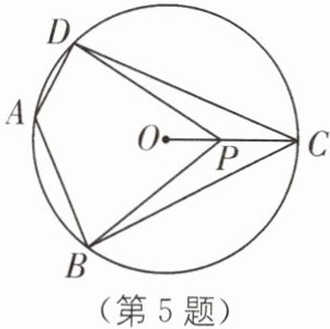 5. 中考新考法 满足条件的结论开放 如图,四边形ABCD内接于$\odot O,∠DAB= 130^{\circ }$,连接OC,点P是半径OC上任意一点,连接DP、BP,则$∠BPD$的度数可能为____°(写出一个即可).