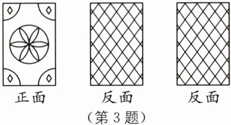 3. 如图,桌面上有3张卡片,1张正面朝上.任意将其中1张卡片正反面对调一次后,这3张卡片中出现2张正面朝上的概率是( ).