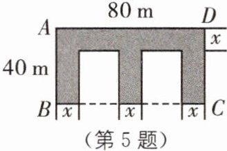 5 教材P30习题T5·变式 某学校有一长方形空地ABCD,长80m,宽40m,计划在这块空地上划出如图所示宽度相等的E形区域作为花圃,已知花圃区域的面积为$1700m^2,$求该花圃的宽度x(单位:m).