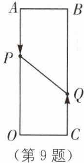 9 中考新考法 满足结论的条件开放(1)问题情境:如图,已知矩形AOCB,$AB= 6cm,BC= 16cm,$动点P从点A出发,沿边AO以3cm/s的速度向点O运动,直到点O为止;动点Q同时从点C出发,沿边CB以2cm/s的速度向点B运动,与点P同时结束运动,出发____时,点P和点Q之间的距离是10cm.