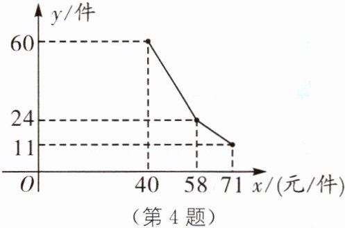 4 某店代理某品牌商品的销售.已知该品牌商品进价每件40元,日销售量y(件)与销售价x(元/件)之间的关系如图所示(实线),员工的工资每人每天100元,每天还应支付其他费用150元.