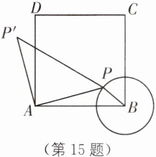 15 中考新考法 操作探究 如图,在正方形ABCD中,$AB= 4$,以点B为圆心、1为半径作$\odot B$,点P在$\odot B$上移动,连接AP.将AP绕点A逆时针旋转$90^{\circ}至AP'$,连接$BP'$.在点P移动过程中,$BP'$长度的最小值是( ).