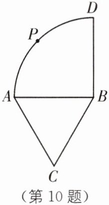 10 如图,弧AD是以等边三角形ABC的一边AB为半径的四分之一圆周,P为弧AD上任意一点.若$AC= 5$,则四边形ACBP周长的最大值是(