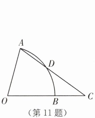 11 如图,在扇形OAB中,D为$\overset{\frown}{AB}$上的点,连接AD并延长与OB的延长线交于点C,若$CD= OA,∠O= 75^{\circ}$,则$∠OAC$的度数为(