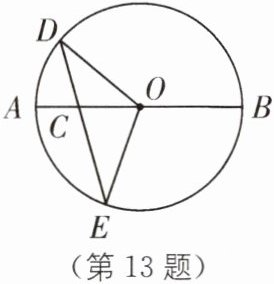13 如图,点C是$\odot O$直径AB上一点,过点C作弦DE,使$DC= OC,∠AOD= 40^{\circ}$,求$∠BOE$的度数.