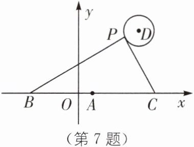 7 如图,在平面直角坐标系中,已知点$A(1,0)$、$B(1-a,0)$、$C(1+a,0)(a>0)$,点P在以$D(4,4)$为圆心,1为半径的圆上运动,且始终满足$∠BPC= 90^{\circ }$,则a的最大值是____.
