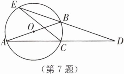 7 教材P61习题T7·改编 如图,AB是⊙O的直径,D是弦AC的延长线上一点,且CD= AC,DB的延长线交⊙O于点E,连接CE。