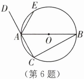 6 教材P61习题T8·改编 如图,AB是⊙O的直径,点C在圆上,∠BAD是△ABC的一个外角,它的平分线交⊙O于点E。不使用圆规,请你仅用一把不带刻度的直尺作出∠BAC的平分线。并说明理由。