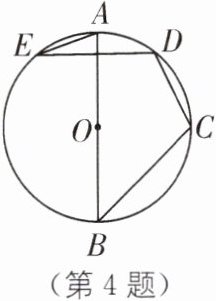 4 如图,AB是⊙O的直径,C、D、E在⊙O上,若∠AED= 20°,则∠BCD的度数为