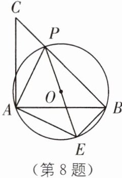 8 如图,已知等腰直角三角形ABC,点P是斜边BC上一点(不与B、C重合),PE是$\triangle ABP的外接圆\odot O$的直径.