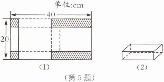 5. 提分优练 中考新考法 操作探究 如图(1),有一张长40cm、宽20cm的长方形硬纸片,裁去角上2个小正方形和2个小长方形(图中阴影部分)之后,恰好折成如图(2)的有盖纸盒.