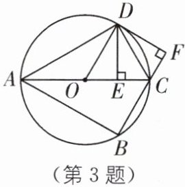 3 如图,四边形$ABCD内接于\odot O$,$AC为\odot O$的直径,$\angle ACD+\angle BCD= 180^{\circ}$,连接$OD$,过点$D作DE\perp AC$,$DF\perp BC$,垂足分别为$E$、$F$。