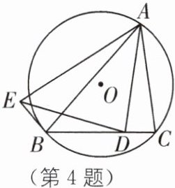 4 (2024·济宁中考)如图,$\triangle ABC内接于\odot O$,$D是BC$上一点,$AD= AC$。$E是\odot O$外一点,$\angle BAE= \angle CAD$,$\angle ADE= \angle ACB$,连接$BE$。