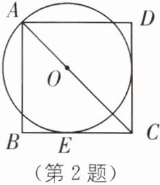 2 如图,$O为正方形ABCD$对角线上一点,以点$O$为圆心,$OA长为半径的\odot O与BC相切于点E$。