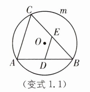 变式1.1 (2025·徐州睢宁期中)如图,AB是$\odot O$的弦,C是优弧AmB上一动点,连接AC、BC,点D、E分别是AB、BC的中点,连接DE.若$AB= 2\sqrt {3},∠ACB= 60^{\circ }$,则DE的最大值为____