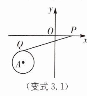变式3.1 如图,点A的坐标为$(-3,-2),\odot A$的半径为1,P为x轴上一动点,PQ切$\odot A$于点Q,则当PQ取最小值时,点P的坐标为( ).