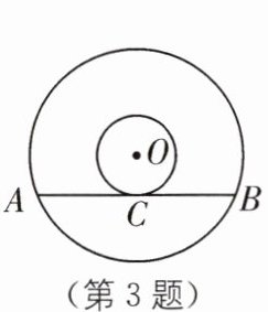 3 如图,在以点$O$为圆心的两个同心圆中,大圆的弦$AB$与小圆相切,切点为$C$,若大圆的半径是13,小圆的半径是5,则$AB$的长为(