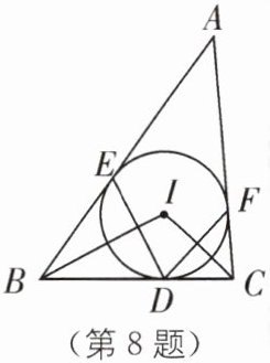 8 如图,在$\triangle ABC$中,内切圆$I与AB$、$BC$、$CA分别切于点E$、$D$、$F$,连接$BI$、$CI$、$FD$、$ED$.