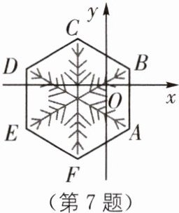 7 新情境 构建模型 在冬奥会开幕式和闭幕式中,一片“雪花”的故事展现了“世界大同、天下一家”的主题,让世界观众感受了中国人的浪漫。如图,将“雪花”图案(边长为4的正六边形ABCDEF)放在平面直角坐标系中,若AB与x轴垂直,顶点A的坐标为(2,-3),则顶点C的坐标为( )。