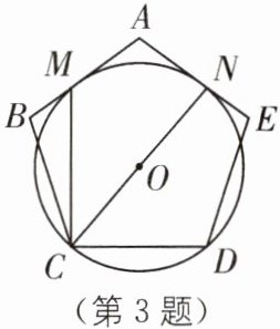 3 (2024·南京玄武区期末)如图,已知正五边形ABCDE,经过C、D两点的⊙O与AB、AE分别相切于点M、N,连接CM、CN,则∠MCN= ______°。