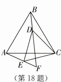 18. 手拉手模型 $\triangle ABC$是边长为5的等边三角形,$\triangle DCE$是边长为3的等边三角形,直线BD与直线AE交于点F.如图,若点D在$\triangle ABC$内,$∠DBC= 20^{\circ }$,则$∠BAF= $______$^{\circ }$;现将$\triangle DCE$绕点C旋转1周,在这个旋转过程中,线段AF长度的最小值是______.