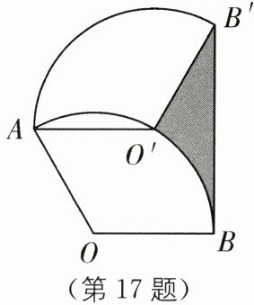 17. 如图,将半径为2,圆心角为$120^{\circ }$的扇形OAB绕点A逆时针旋转$60^{\circ }$,点O、B的对应点分别为$O'$、$B'$,连接$BB'$,则图中阴影部分的面积是______.