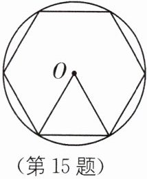 15 传统文化 《九章算术》 我国魏晋时期数学家刘徽在《九章算术注》中提到了著名的“割圆术”,即利用圆的内接正多边形逼近圆的方法来近似估算,指出“割之弥细,所失弥少。割之又割,以至于不可割,则与圆周合体,而无所失矣”。“割圆术”孕育了微积分思想,他用这种思想得到了圆周率π的近似值为3.1416。如图,⊙O的半径为1,运用“割圆术”,以圆内接正六边形面积近似估计⊙O的面积,可得π的估计值为$\frac{3√3}{2}$,若用圆内接正十二边形作近似估计,可得π的估计值为( )。