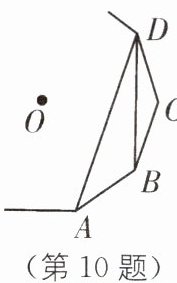 10 如图,A、B、C、D为一个正多边形的顶点,O为正多边形的中心。若∠ADB= 18°,则这个正多边形的边数为(