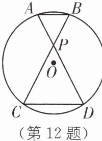 12 如图,AB、CD分别是⊙O的内接正十边形和正五边形的边,AD、BC交于点P,则∠APC的度数为( )。