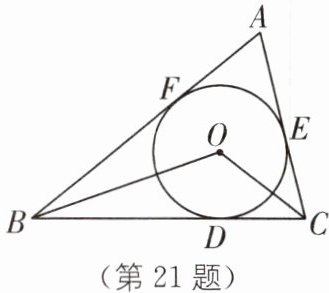 21 如图,$\triangle ABC的内切圆\odot O$与BC、CA、AB分别相切于点D、E、F。