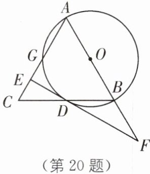 20(2024·常州期中)如图,在$\triangle ABC$中,$AB= AC$,以AB为直径的$\odot O$交BC于点D,过点D作$EF⊥AC$于点E,交AB的延长线于点F。