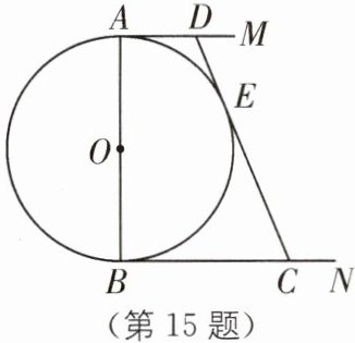 65°或115° [解析]连接OD、OE,根据切线的性质,得∠BDO=∠BEO=90°.又∠ABC=50°,