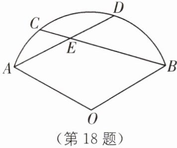 18 如图,在扇形AOB中,点C、D在$\overset{\frown}{AB}$上,连接AD、BC交于点E,若$∠AOB= 120^{\circ}$,$\overset{\frown}{CD}的度数为50^{\circ}$,则$∠AEB= $____$^{\circ}$。