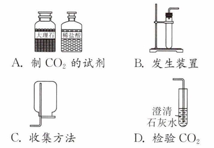 (用化学方程式表示)。(2)【实验装置】实验室制取并收集一瓶$CO_2,$应选用下列装置中的