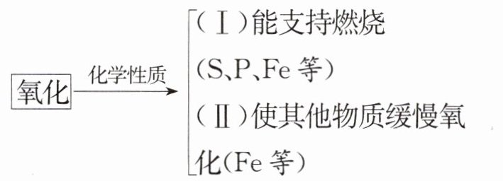 A [解析]硫燃烧能生成一种有刺激性气味的气体,不产生白烟,红磷在氧气中燃烧能够产生大量白烟,A错误;所有的氧化反应都会放热,故Ⅰ、Ⅱ两类反应都放出热量,B正确;Ⅰ、Ⅱ两类有氧气参加的化学反应的相同点是都是氧化反应,均体现了氧气的氧化性,C正确;铁丝燃烧属于剧烈氧化为Ⅰ类反应,铁丝生锈属于缓慢氧化为Ⅱ类反应,两类反应都属于氧化反应,D正确。