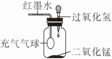 B [解析]过氧化氢在二氧化锰的催化下,产生大量的氧气,瓶内压强增大,气球缩小,红墨水左移,故选B。