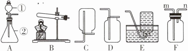 (2)过氧化氢在二氧化锰催化作用下生成水和氧气;氧气密度比空气大,用F装置收集时,气体应从m端通入;验满时,带有火星的木条应放在n处。