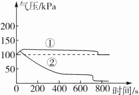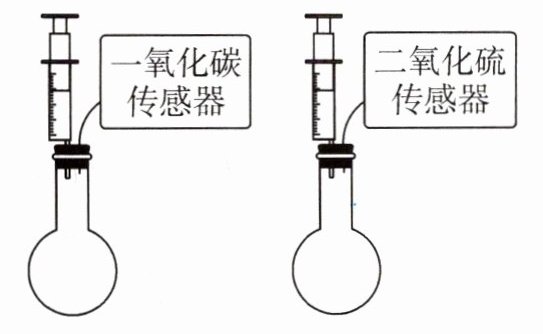 4 中考新考法 数字化实验 在两个同样的烧瓶中分别充满某污染严重的空气,某兴趣小组的同学通过注射器向烧瓶中分别加入同体积的水,分别利用一氧化碳和二氧化硫传感器得到的气压变化对应下图的曲线①和②。下列说法错误的是(