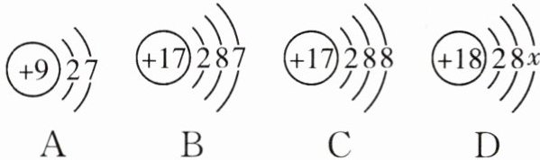 7 如图中的A、B、C、D是四种粒子的结构示意图。