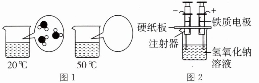 如图2是兴趣小组利用注射器改装的电解水实验装置。两支注射器排尽空气后,均吸20mL氢氧化钠溶液,接通电源。