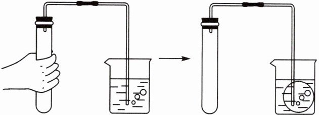 (1)图示中的实验操作的目的是检查装置气密性,看是否漏气;实验原理是气体热胀冷缩,气体受热膨胀后排出,导管口有气泡冒出。
